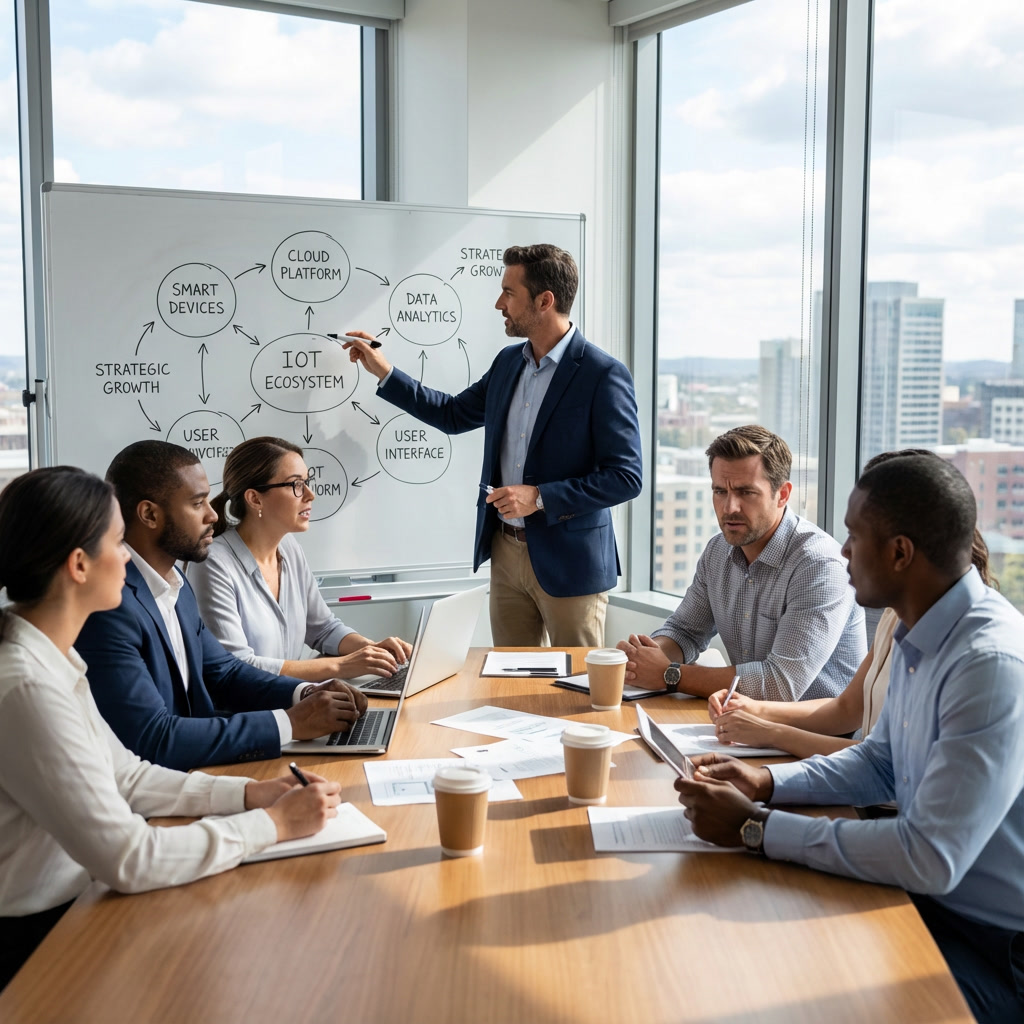 Analyse von Bedürfnissen, Erstellung einer IoT-Roadmap, Identifikation von Use-Cases und Integration in bestehende IT-Systeme.